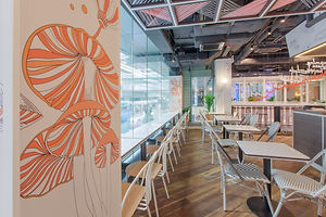 We collaborate with illustrator, Cting in developing artworks on interior surface and shopfront.
